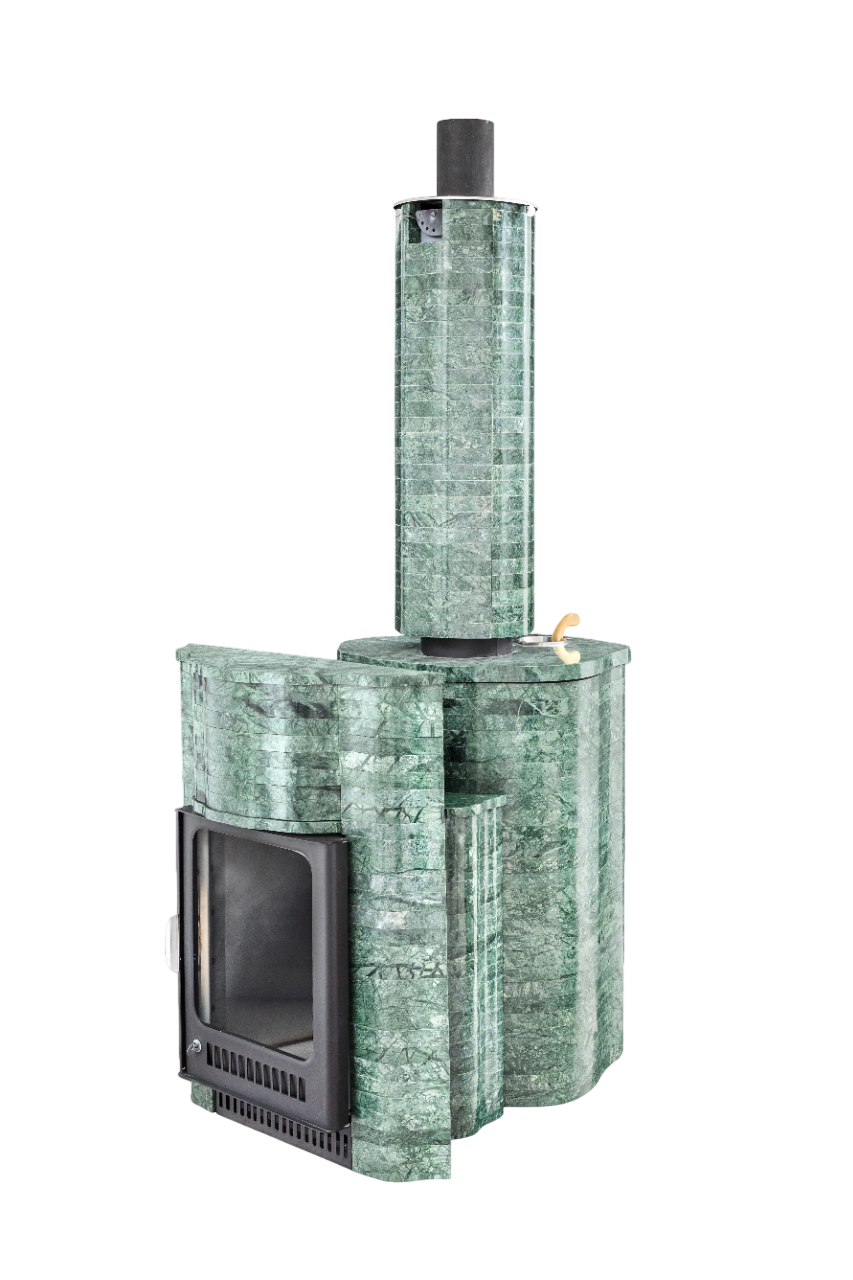 - Боковое и верхнее горение. Быстрая передача тепла камням, минимальный расход дров.