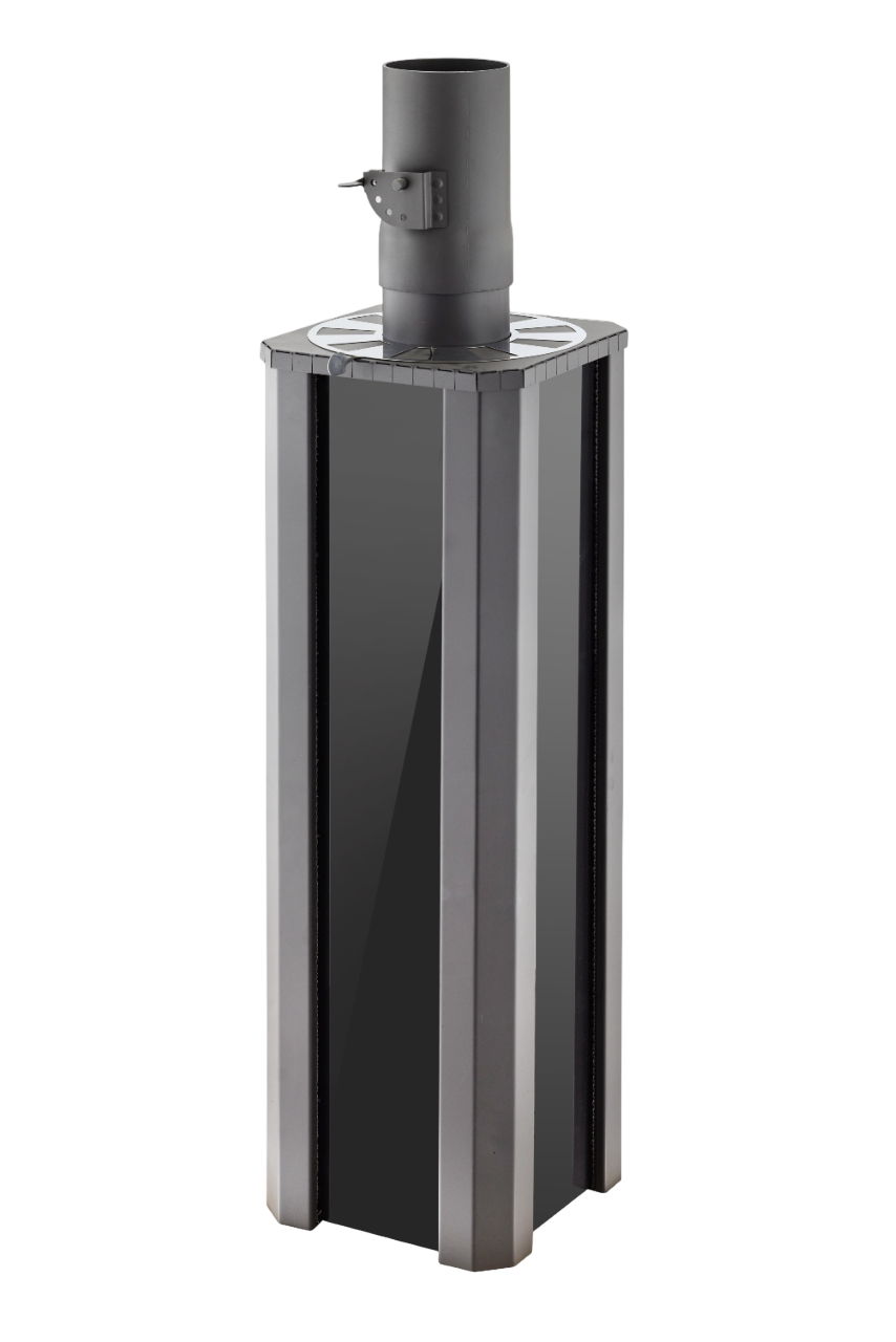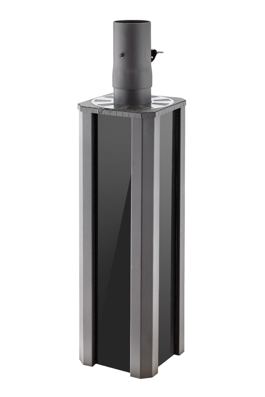 Обеспечивает конвекцию воздуха в помещении, тем самым помогает прогреву парной. Встроенные каналы распределяют потоки воздуха, забирая холодный воздух в нижней части дымохода, нагревая его и отдавая в верхней части с помощью регулятора.
